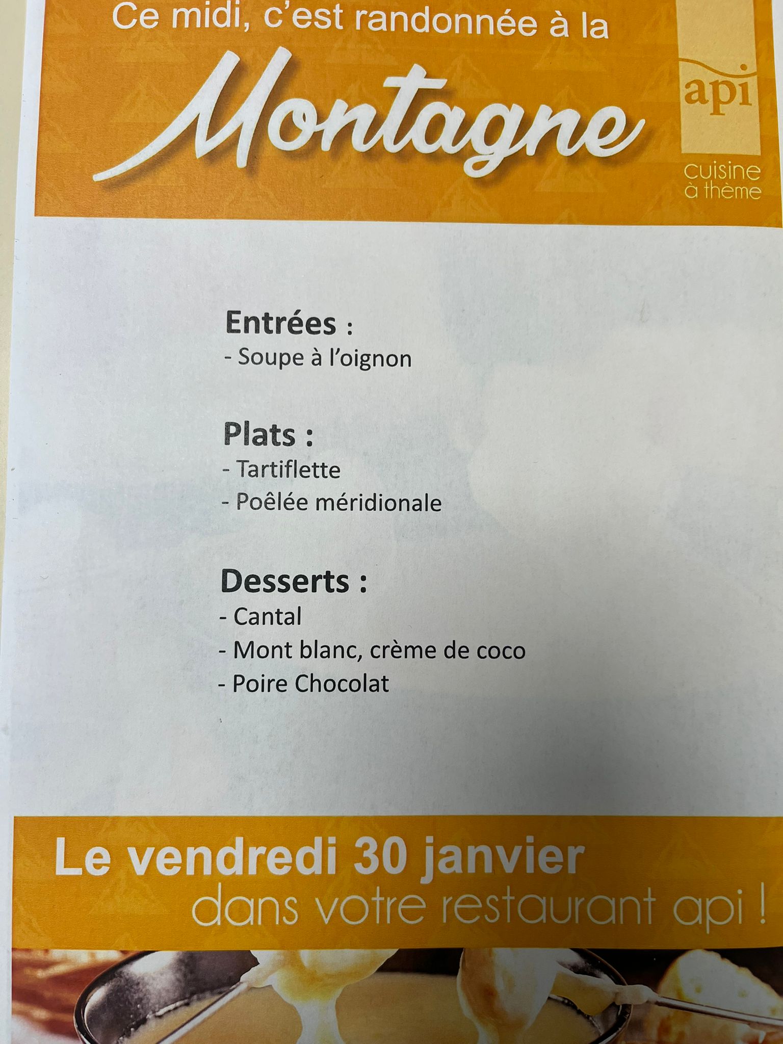 Nous avons pris de la hauteur vendredi midi avec un repas montagnard. Ce thème nous a été proposé par la société de restauration API.